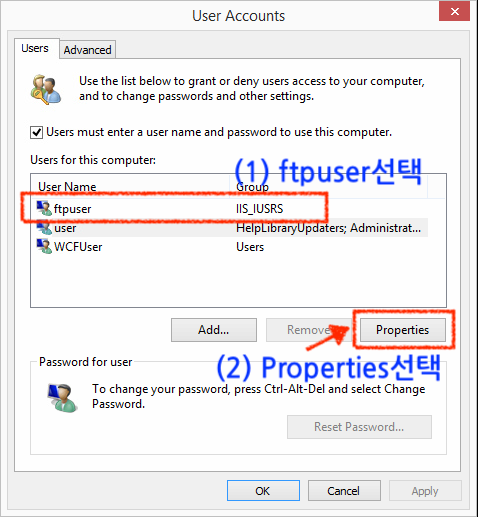 참고: 윈도우 7 FTP서버 IIS 전용 계정 생성하기