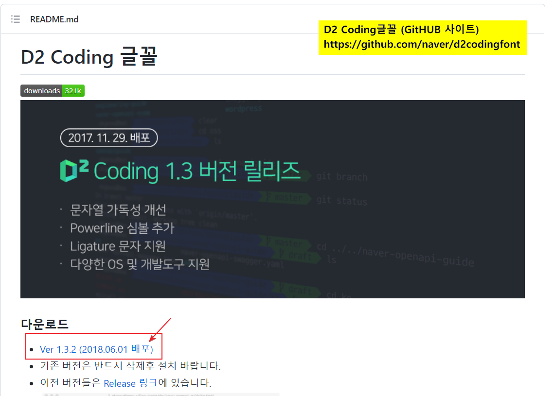 D2 codingfont는 Github에서 다운로드 하실 수있습니다.