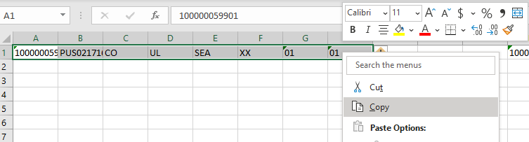 엑셀에 붙여 넣습니다.