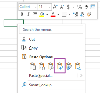 빈 공간에 붙여넣기 옵션(Paste Options) 중에,