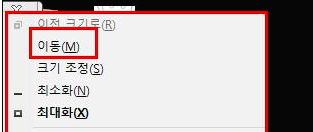 Alt + Space => 키보드 M 키(Move:이동) => 방향키