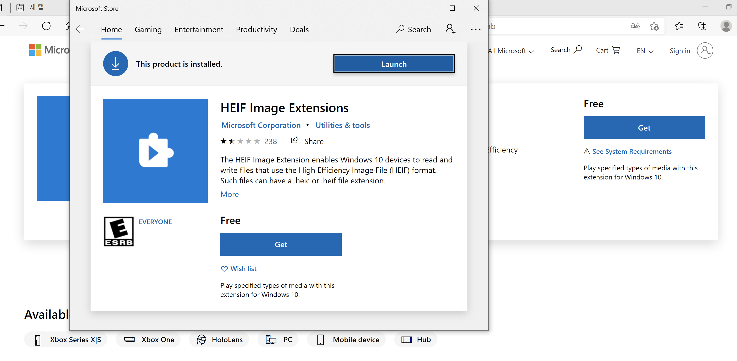 Microsoft Store app에 있는 HEIF 이미지 확장(HEIF Image Extensions)을 설치하고,