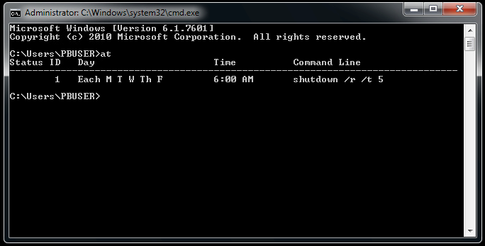과거 Windows 10(윈도우8 이상) 이전에는 at이라는 스케줄 프로그램으로 cmd에서 리부팅 스케줄을 만들 수 있었습니다.