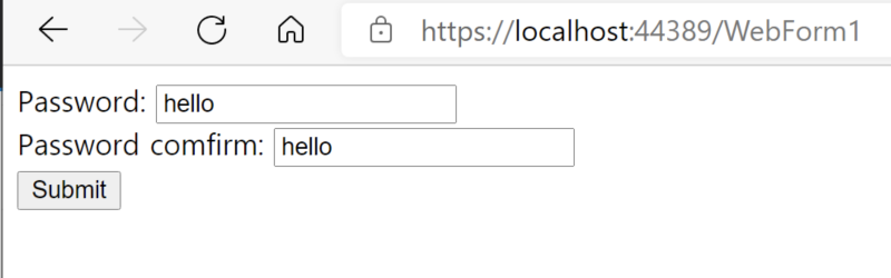 ControlToCompare="TextBox1" ControlToValidate="TextBox2"