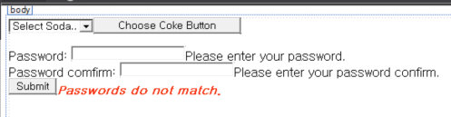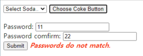 버튼(Choose Coke Button)을 클릭하면, 유효성 검사먼저 진행 됩니다.