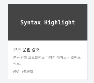 코드 문법 강조(Sytax Hightlight) 플러그인이 초기화된 모습을 보게 되었습니다.