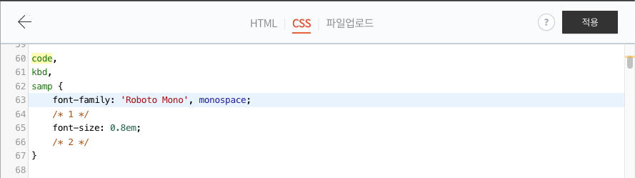 html 코드에 추가한 google font인 'Roboto Mono' 폰트를