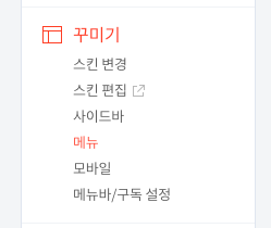 참고로, Menu는 스킨 꾸미기에서 Default로 내비게이션 "사용 안 함"으로 선택이 되어 있습니다.