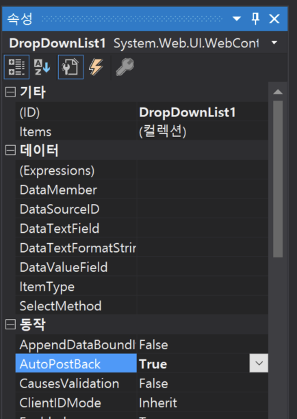 이렇게 AutoPostBack="True" 값을 주게 되면,