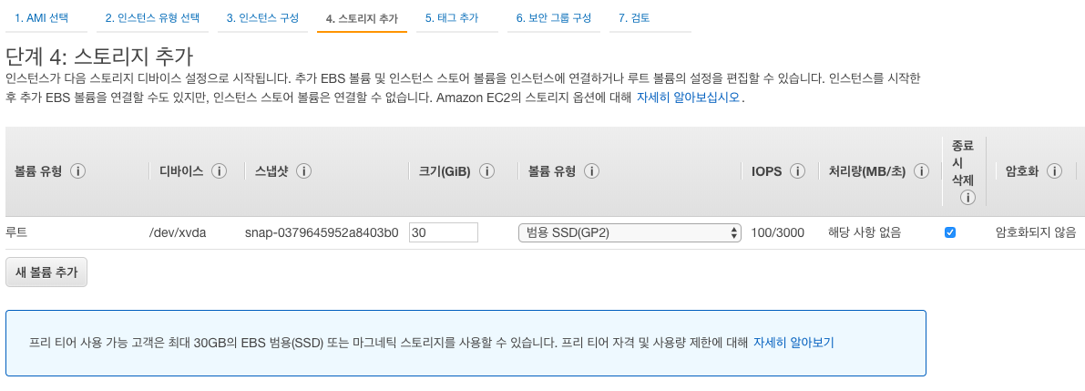 Amazon 프리티어 최대 사이즈는 30GB까지 입니다.