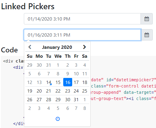 <input type="text" class="form-control datetimepicker-input" data-target="#datetimepicker2" value="01/15/2020">