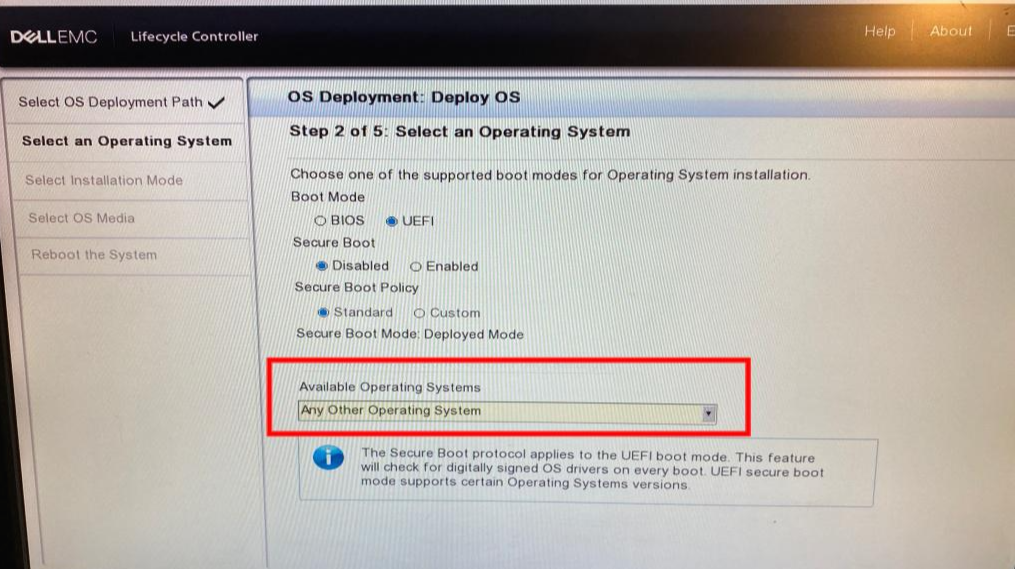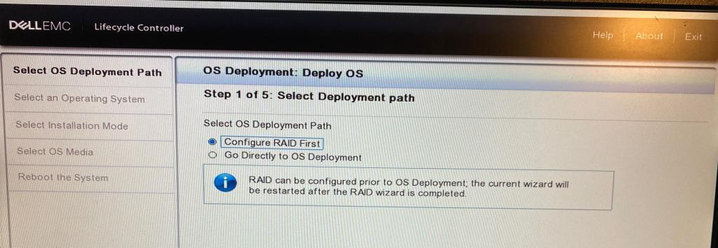 우선적으로 LifeCycle Controller(F10)의 OS Deployment를 통해서 해줘야 합니다.