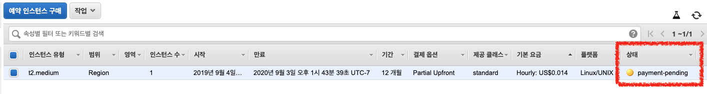최소, 부분 선결재 이상을 하셔야만 EC2 예약 인스턴스 구매가 가능합니다.