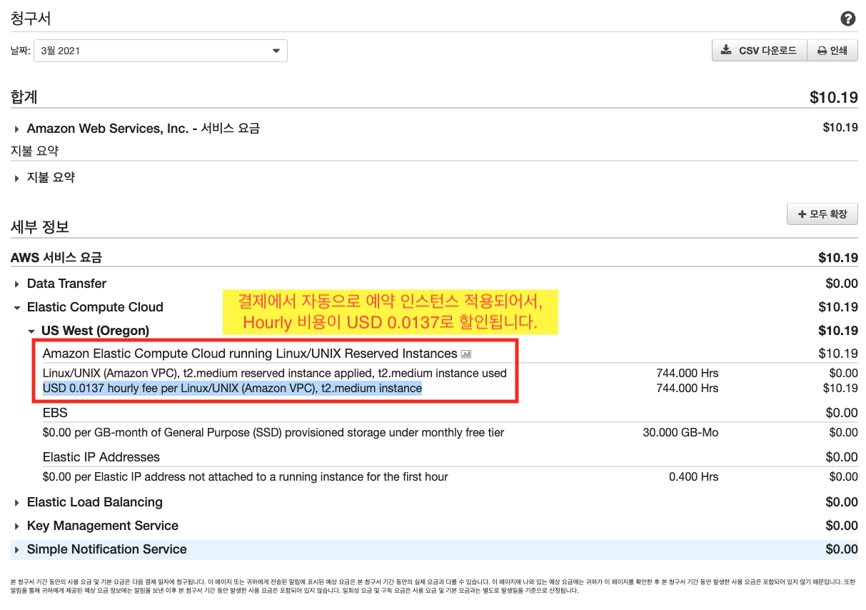 예약 인스턴스는 구매 시간부터 적용되며, 예약 구매가 되기 전의 금액은 따로 청구됩니다.