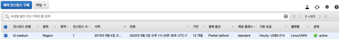 구매한 예약 인스턴스는 같은 인스턴스 유형(t2.medium)으로