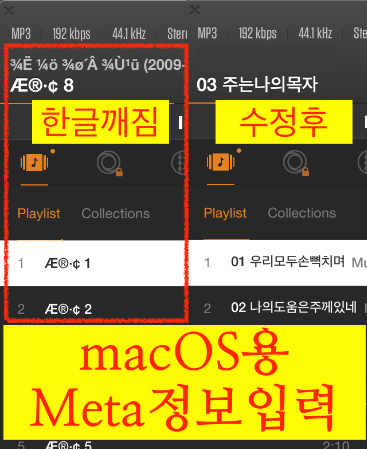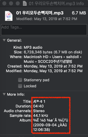 해당 정보를 수정하려면, iTune에서 파일별로 수정하면 되지만,