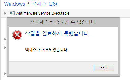 Antimalware Service Executable (Window Defender)를 작업 종료하려고 합니다.