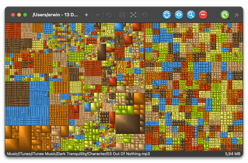 GrandPerspective is a small utility application for macOS that graphically shows the disk usage within a file system. It can help you to manage your disk, as you can easily spot which files and folders take up the most space. It uses a so called tree map f