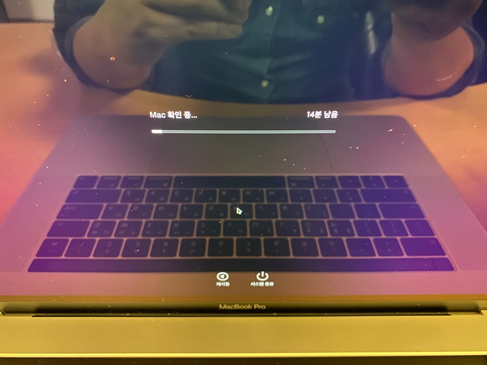 14분 걸린다고 했는데, 좀 더 조금 걸린걸 같네요. - Mac을 검사하는 데는 2~3분 정도 소요됩니다. 문제가 발견되는 경우 Apple 진단은 해결 방법을 제안하고 참조 코드를 제공합니다. 계속 진행하기 전에 참조 코드를 기록해 둡니다.