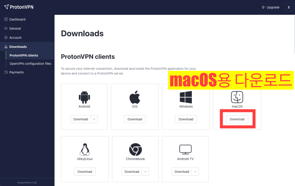 ProtonVPN 다운로드 사이트에서 Mac용을 다운로드 후 설치도 가능하며,