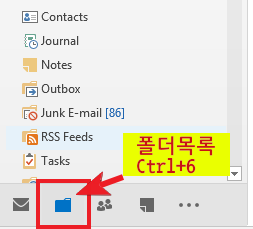 - 폴더 목록 보기를 엽니다. 탐색 창 아래쪽에서 폴더 목록 아이콘을 클릭하거나 Ctrl+6을 누릅니다.
