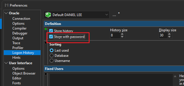PL/SQL Developer 로그인 시 패스워드 저장하기 설정