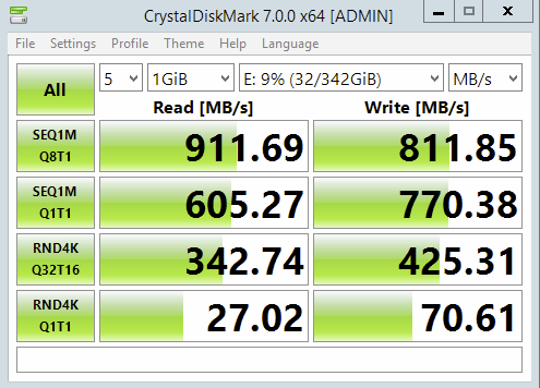 참고로 mSATA도 읽기/쓰기 550MB/s입니다.