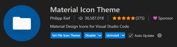 VS Code의 EXTENSIONS에 "Meterial Icon Theme"를 입력하면 처음에 뜹니다.