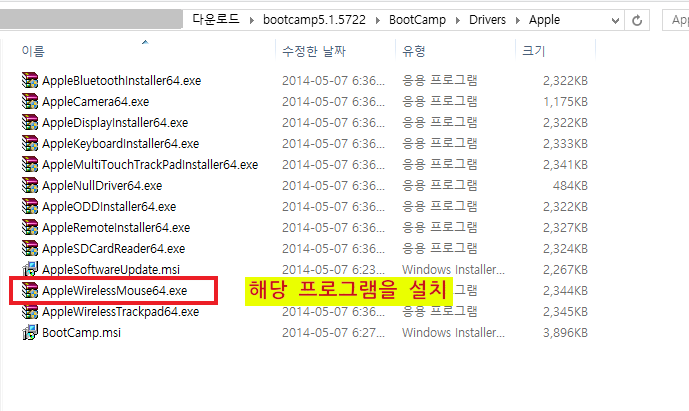 이 곳에서, AppleWirelessMouse64.exe 파일을 설치하면 됩니다.