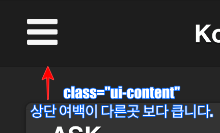 Header의 바와 ui-content의 사이가 다른 곳보다 여백이 커서 보기가 싫을 때가 있습니다.