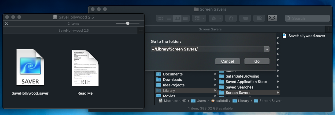 파일 SaveHollywood.saver를 해당 위치에 복사해 줍니다.