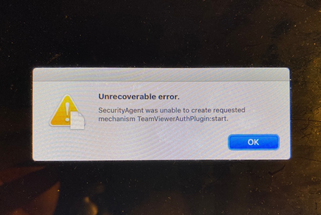 Hello! Am in a bit of a pickle after a succesful upgrade to Catalina and then uninstalling Teamviewer through CleanMyMac uninstaller utility. It all seemed fine till i had rebooted and it fails with an Unrecoverable error for security agent Teamviewer auth