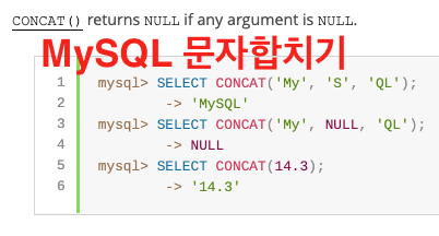 2011/09/06 - [DB관련/MySQL] - [펌]MySQL 문자 합치기 합수