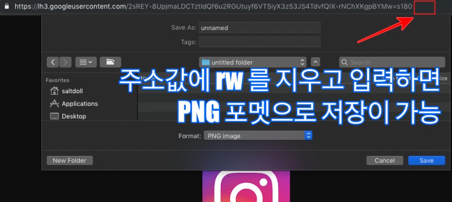 이 경우 이미지의 주소를 복사해서 "rw"를 제거하고 다시 엔터를 쳐서 이미지를 불러오면, 해당 이미지는 PNG로 저장이 가능합니다.