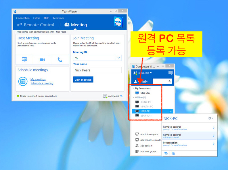 해당 프로그램도 가입을 통해서 원격지원할 PC에 리스트를 만들수 있습니다.