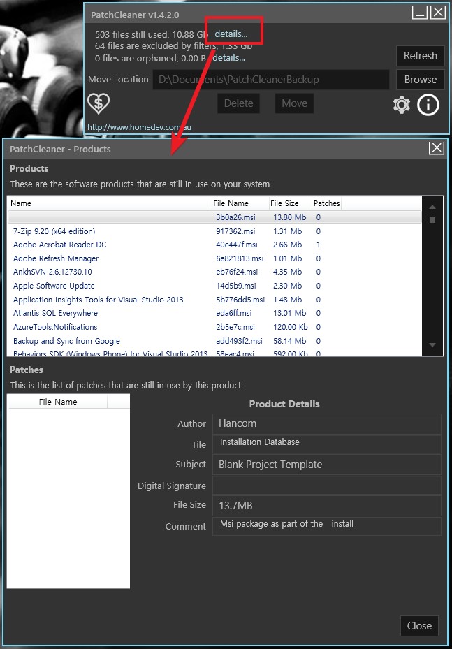 PatchCleaner 공식 사이트: http://www.homedev.com.au/Free/PatchCleaner
