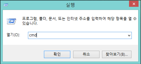 우선적으로 cmd(Command Prompt)을 실행해 줍니다.