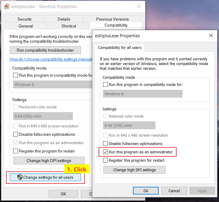 다시 editplus.exe의 속성 창을 보면,