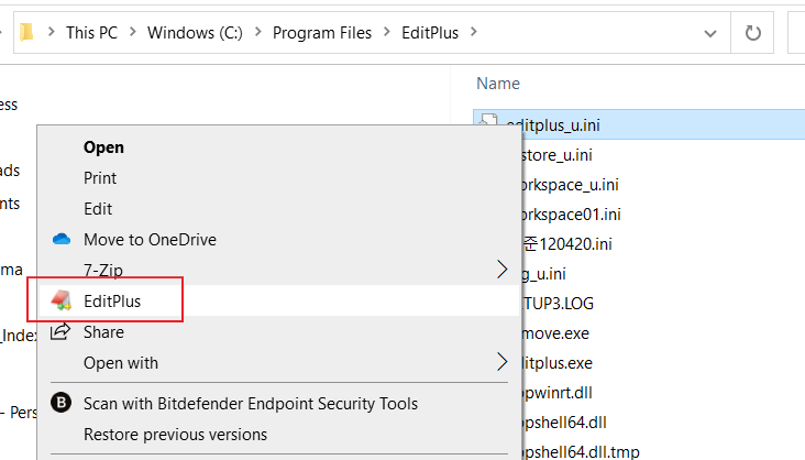 탐색기에서 EditPlus로 편집을 원하는 파일을 선택 후,