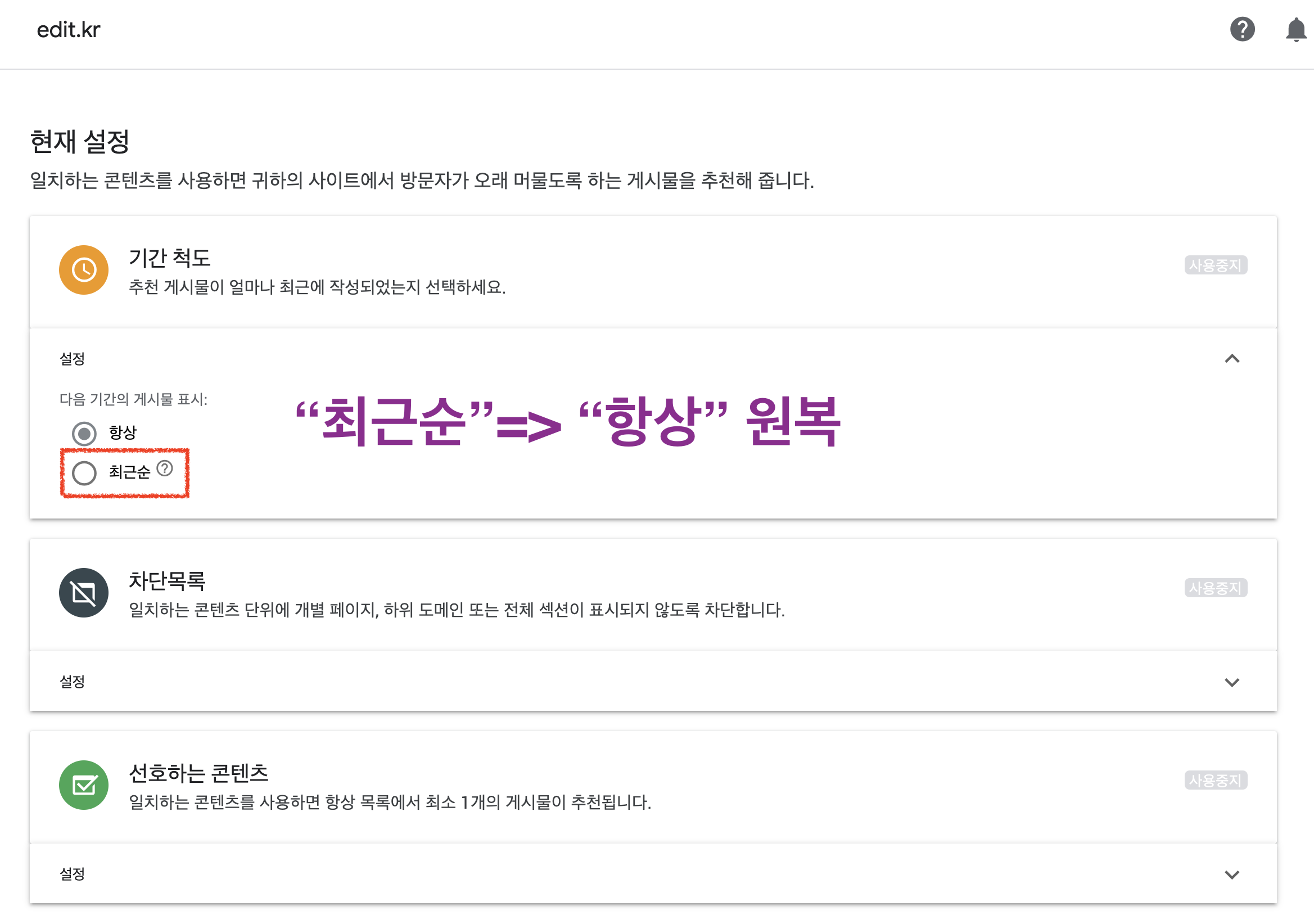 (참고로 아래의 설정 적용되는 시점은 24시간 지나야 한다고 합니다.- AdSense고객센터 글 참조)