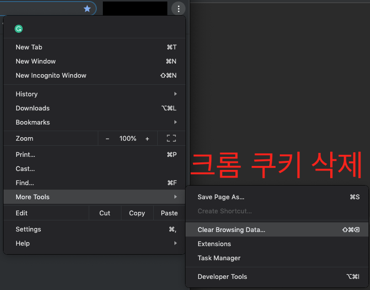 어떤 분은 크롬(Chrome) 브라우저의 쿠키에 문제라고 해서 해당 부분도 삭제해 보았습니다.