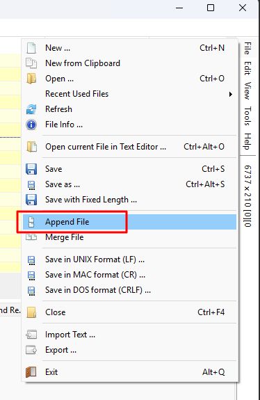 File > Append File로 추가하면, 아래에 붙게 됩니다.