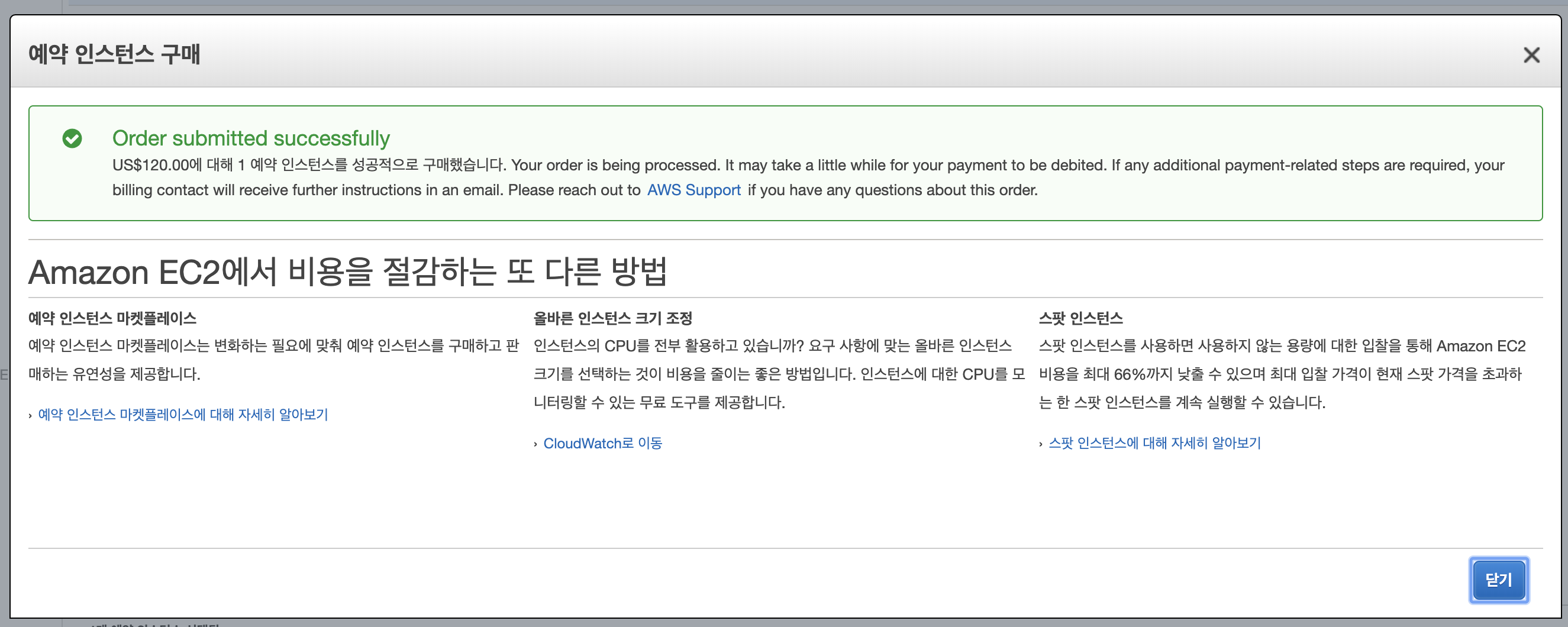 예약 인스턴스 구매 버튼으로 구매 프로세스를 진행하시면 됩니다.