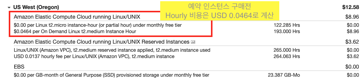예약 인스턴스는 구매 시간부터 적용되며, 예약 구매가 되기 전의 금액은 따로 청구됩니다.