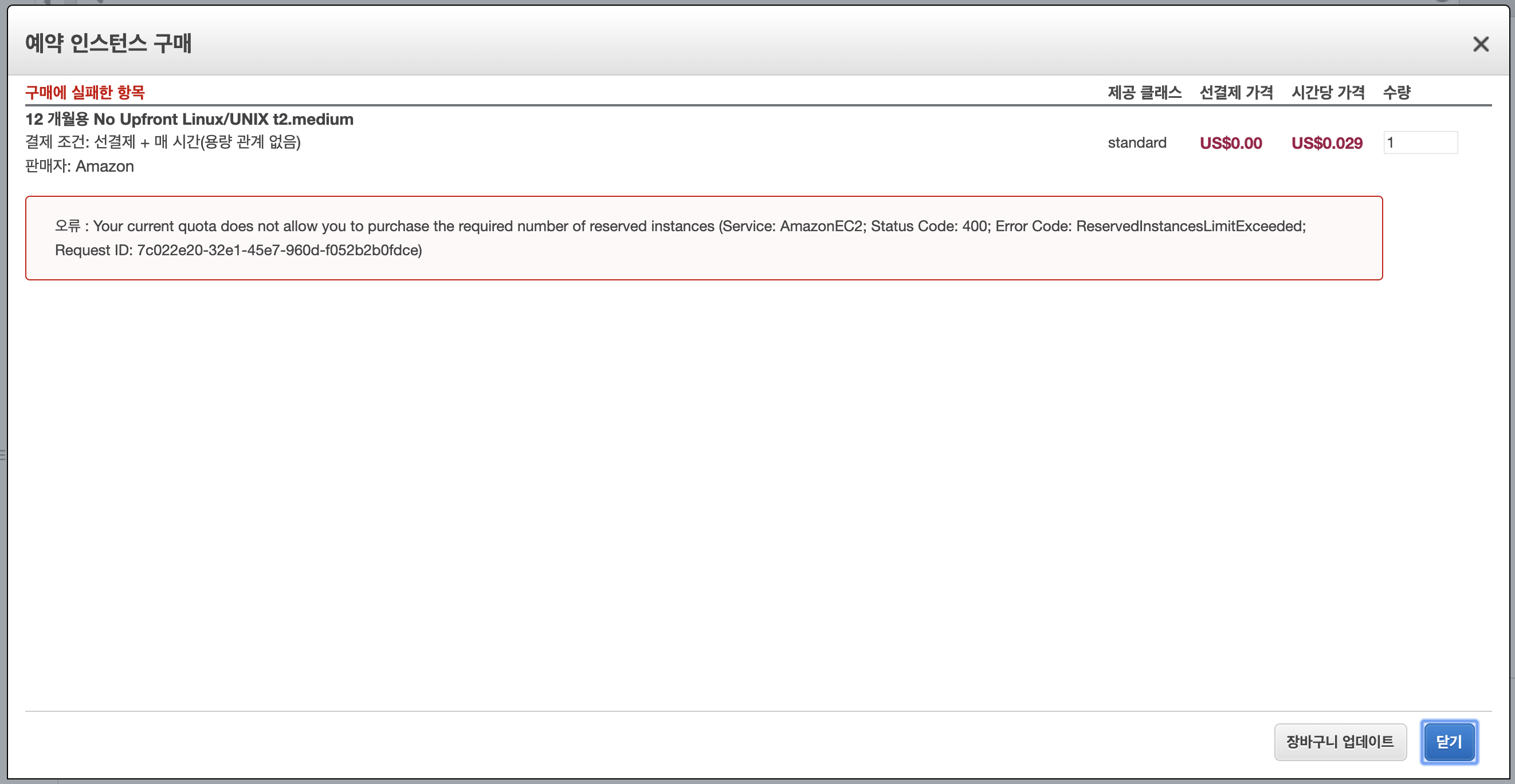 EC2 예약 인스턴스 구매하기 (구매 실패 되는 이유)