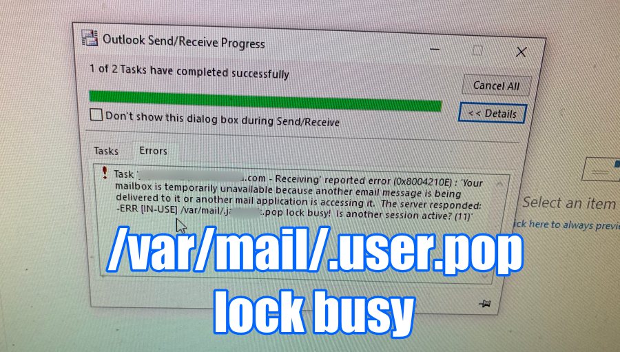 갑자기 -ERR [IN-USE] /var/mail/.user.pop lock busy! 라는 메시지가 뜨면서,