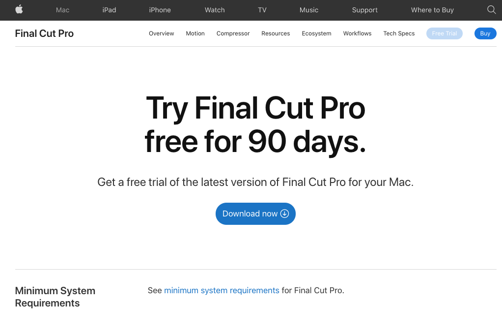 (파이널 컷 프로 체험판 다운로드 페이지)