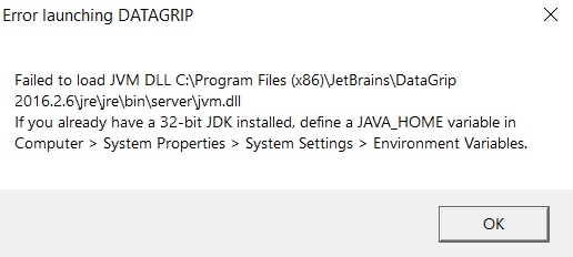 JetBrains제품군 실행이 안될때 Error launching (PHPSTORM, DATAGRIP = 32bit Java 로된 제품)