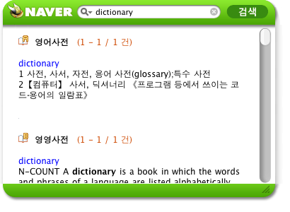 맥 Dash Board에 네이버 사전 위젯을 추가 할 수 있습니다.