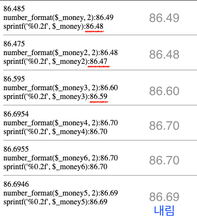 PHP에서 round($_val, 2); 소수점 2자리 반올림을 하면, 뒷자리가 0을로 채워지지가 않습니다.
